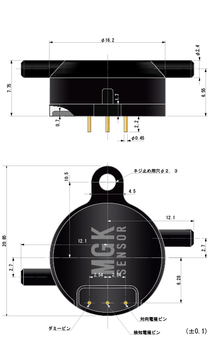 φ0.45 黄銅、金メッキ |